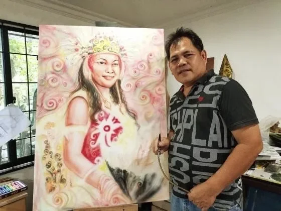 Meges Laoi is a Bidayuh multidisciplinary artist whose practice spans painting, sculpture, mixed media, and contemporary cultural expression. With 36 years of experience teaching the arts, he has guided generations of young creatives while continuously refining his own artistic voice.